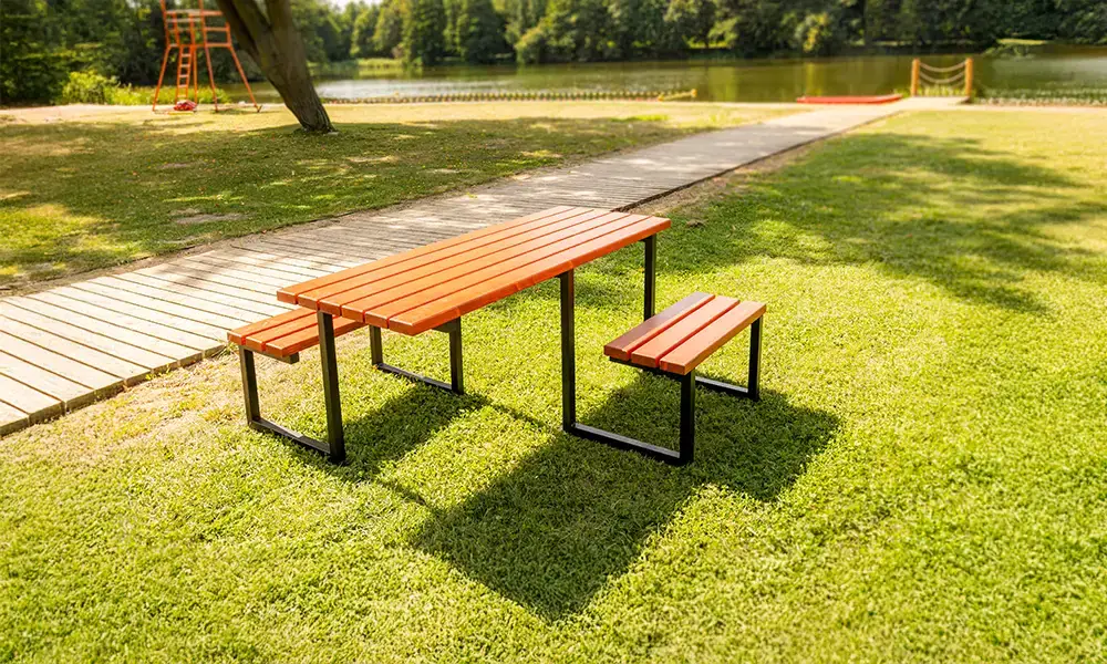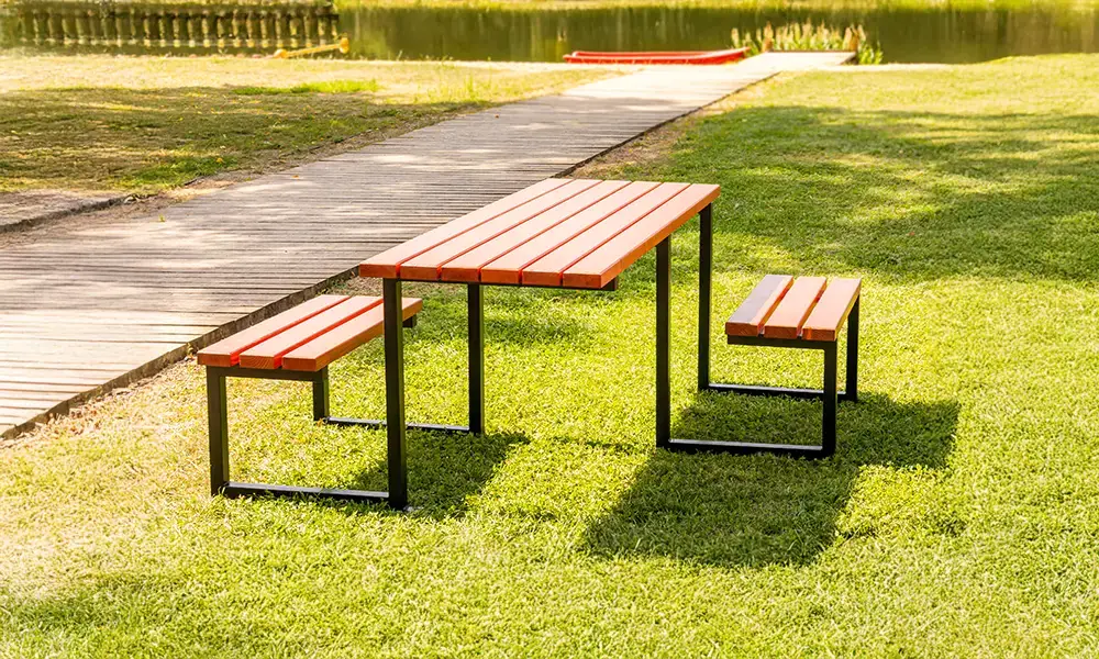 Visina ploče stola i pažljivo odabrane proporcije klupa čine set udobnim za djecu, odrasle i starije osobe. Nadalje, cijeli je set zaštićen modernom tehnologijom praškastog premaza, učinkovito štiteći čelične komponente od korozije i mehaničkih oštećenja.