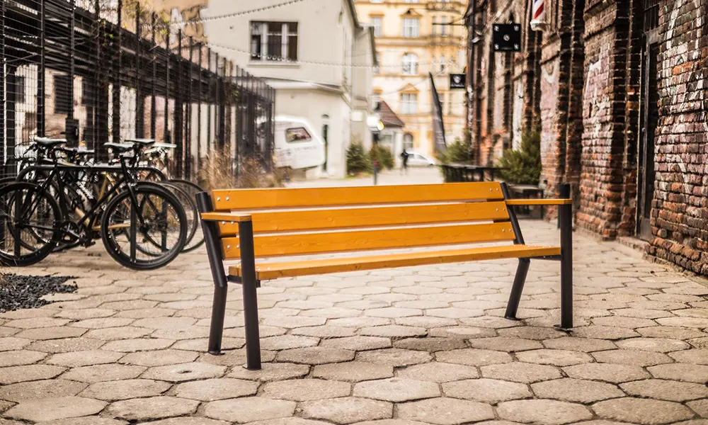 Klupa Gladiator Bis s drvenim rukonaslonom odlično pristaje ujedno zelenim površinama, ali i modernim zgradama u središtu grada. Dodatno udobno sjedište, drveni rukonaslon i stabilna konstrukcija udovoljit će i najzahtjevnijim ljubiteljima odmora na svježem zraku.