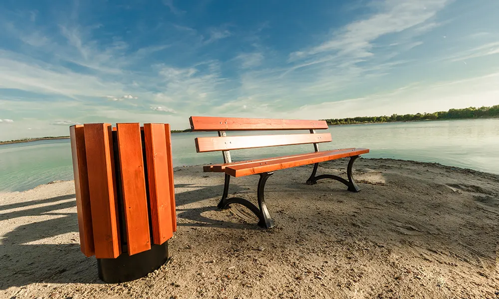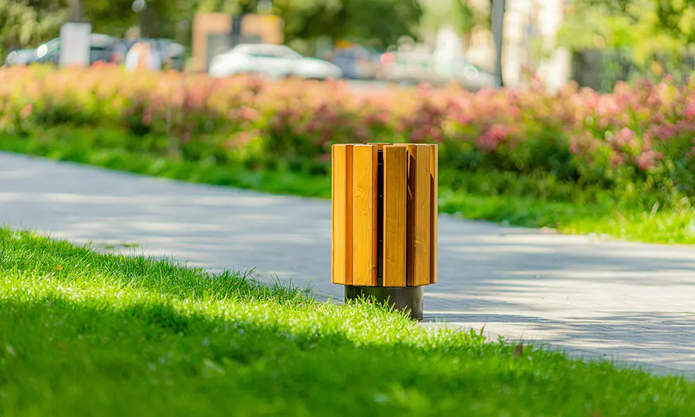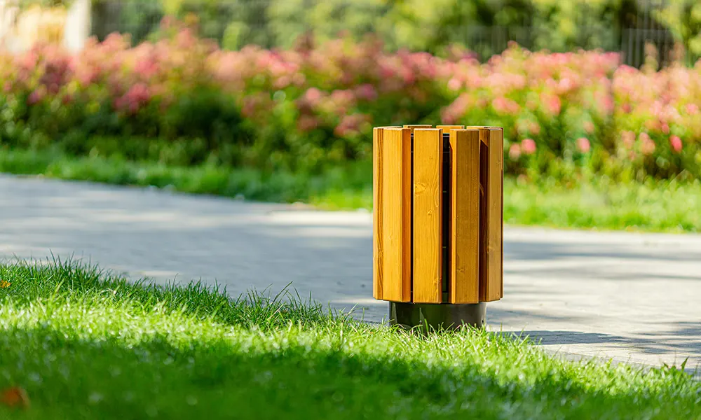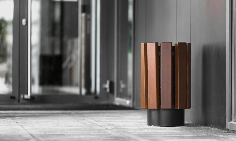 Koš Atene zahvaljujući svom univerzalnom dizajnu odlično se komponira s našim čeličnim klupama i ostalim elementima male arhitekture.