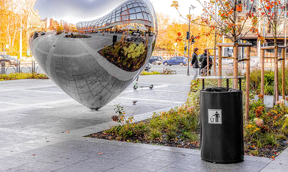 Izuzetno solidan čelični koš za smeće Miami II zapremnine 300 l je izuzetno dobar odabir. Izrađen je od čelika visoke kvalitete. Savršen za pješačke puteve, uz plaže te na gradskim trgovima s velikim prometom ili gradskim parkovima. Izduženi veliki čelični natkriveni dio odlično štiti sadržaj koša od ptica te vremenskih uvjeta.  Estetski izgled i funkcionalnost odlično se uklapa s čeličnim klupama, stalcima za bicikle te ostalim elementima male arhitekture. Dizajniraj svoj prostor kombinirajući naše proizvode prema svojim potrebama.