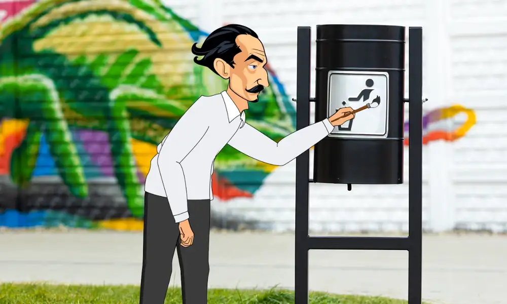 Zahvaljujući stalku izrađenog od dvije čelične cijevi, koš dobiva dodatnu stabilnost, a metalna pločica s ikonom poziva pješake da ubacuju otpad u odgovarajući dio.