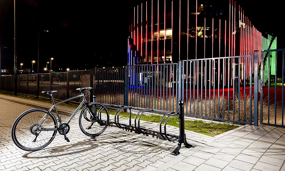 Stalak za bicikle Lodz je dizajniran uz pažnju za najsitnije detalje. Njegov moderan oblik čini da će biti odličan na svakoj površini.