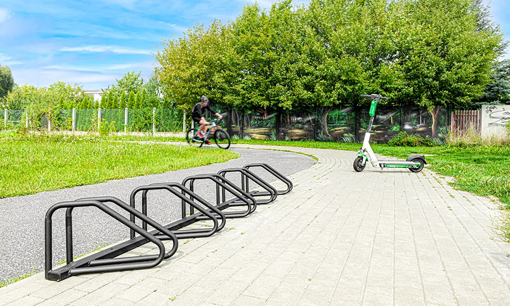 Zahvaljujući otvorima moguće ga je lako montirati na podlogu ili zid. Ovaj izuzetno solidan i univerzalan stalak za bicikle dolazi do izražaja zbog solidne izrade i odličan je za korištenje unutar zgrada, ali i vani.