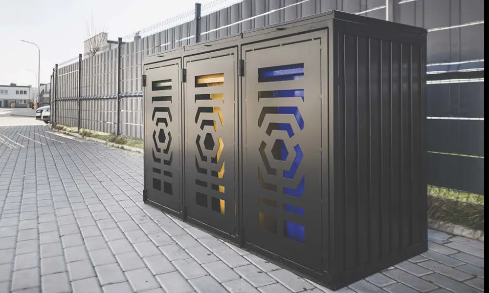 Savršeno rješenje, koje će pomoći sakriti klasične spremnike za otpad na javnom prostoru. Zahvaljujući inovativnom projektu, ova zaštitna maska visoke kvalitete poboljšava izgled gradskog okoliša, sakriva neestetske otpade i uklanja neugodne mirise. S ovim modelom možeš odabrati trebaš li samo zaštitnu masku ili zajedno sa spremnicima od polipropilena. Zapremnina spremnika iznosi 120 litara.